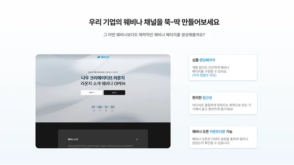 웨비나우는 단순한 화상회의 서비스와 달리, B2B 영업 및 마케팅 담당자들을 위한 맞춤형 웨비나 콘텐츠를 기반으로 한 고객 데이터 분석 솔루션을 제공한다. 고객의 시청 행동, 참여도, 관심사 등을 데이터로 수집 및 분석해, 기업들이 정확하고 세분화된 잠재 고객을 발굴할 수 있도록 돕는다.
