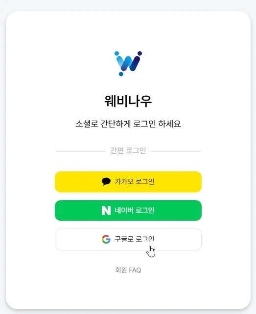 웨비나우는 로그인 페이지에서 간편하게 회원가입이 가능해요.