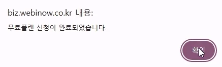 무료 플랜 신청 완료 시 상단에 해당 팝업창이 생성됩니다.