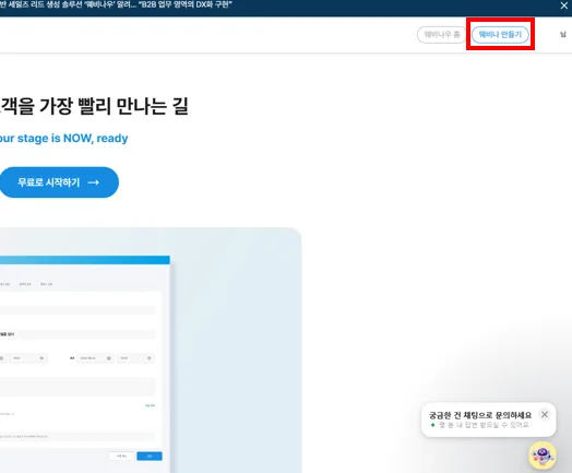 1. 로그인 후 상단에 있는 웨비나 만들기 버튼을 클릭해주세요.