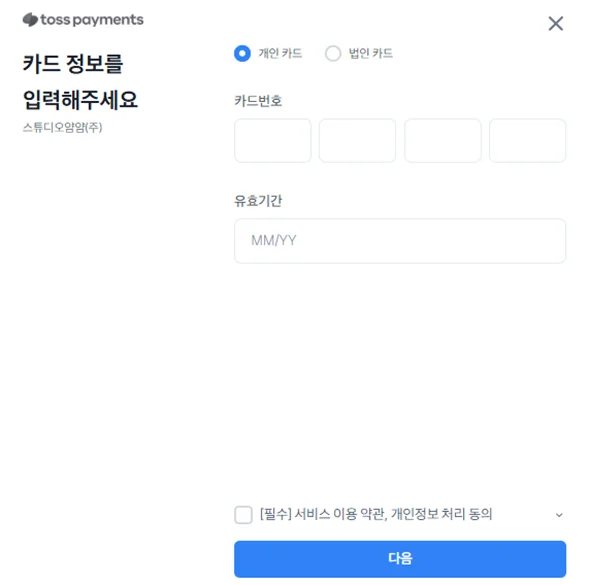 5. 결제창에서 카드번호 입력 후 결제를 진행 해주세요.