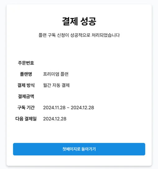 6. 해당 화면이 생성되면 결제 완료입니다.