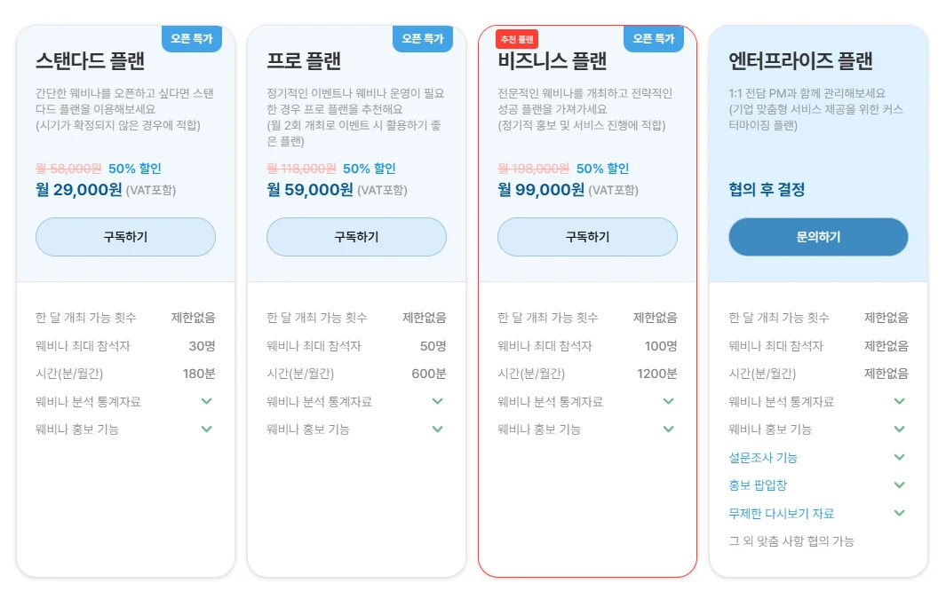 웨비나 플랜 결제