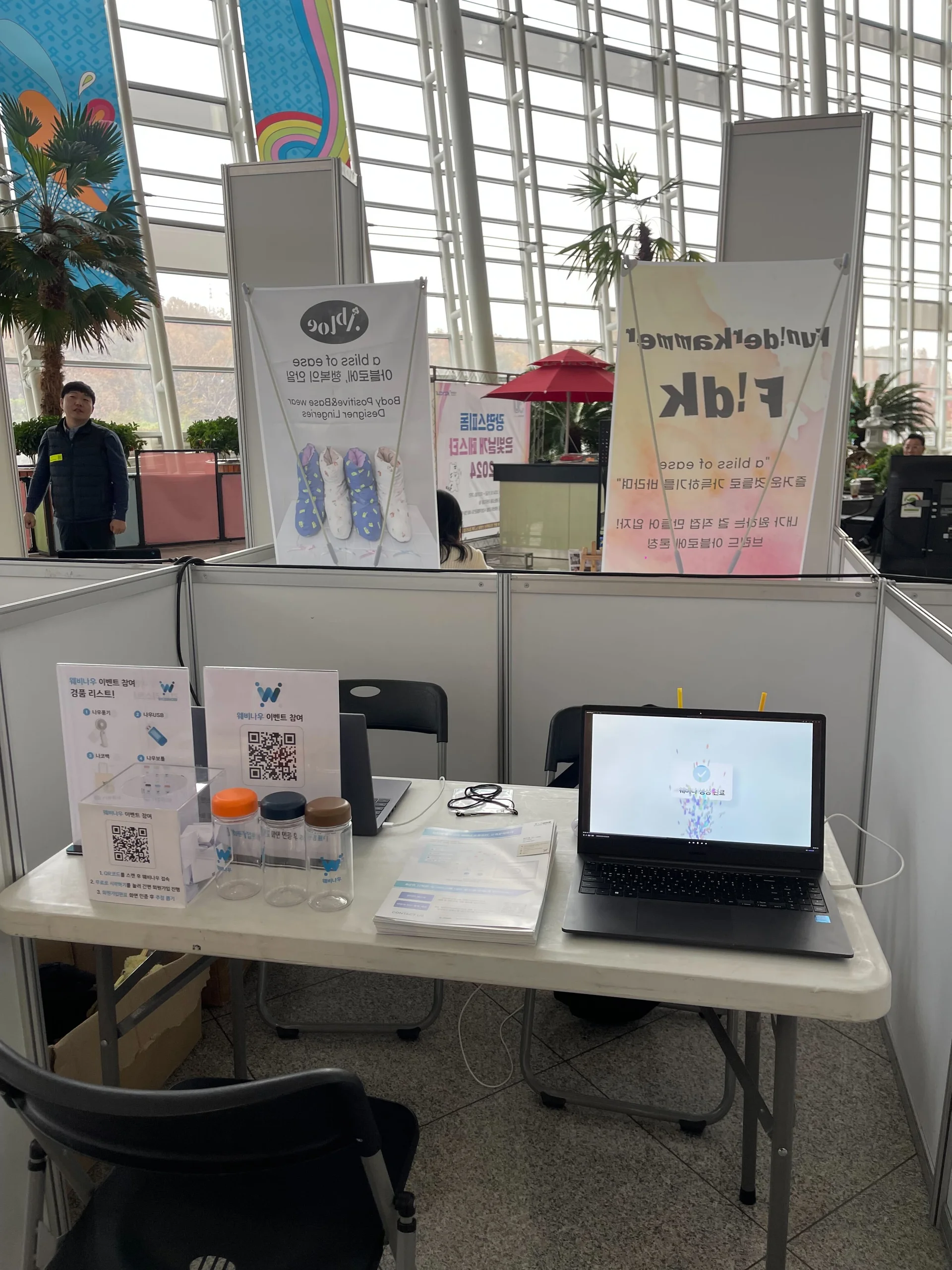 웨비나우는 QR코드를 활용한 회원가입 이벤트를 통해 참가자들에게 경품을 증정하고, 부스 방문의 즐거움을 더했습니다. 이러한 접근은 단순히 서비스를 소개하는 데 그치지 않고, 부스를 찾은 분들과 가볍고 자연스럽게 소통할 수 있는 기회를 만들며 그 과정에서 방문자들의 웃음과 호응을 끌어낼 수 있었습니다.