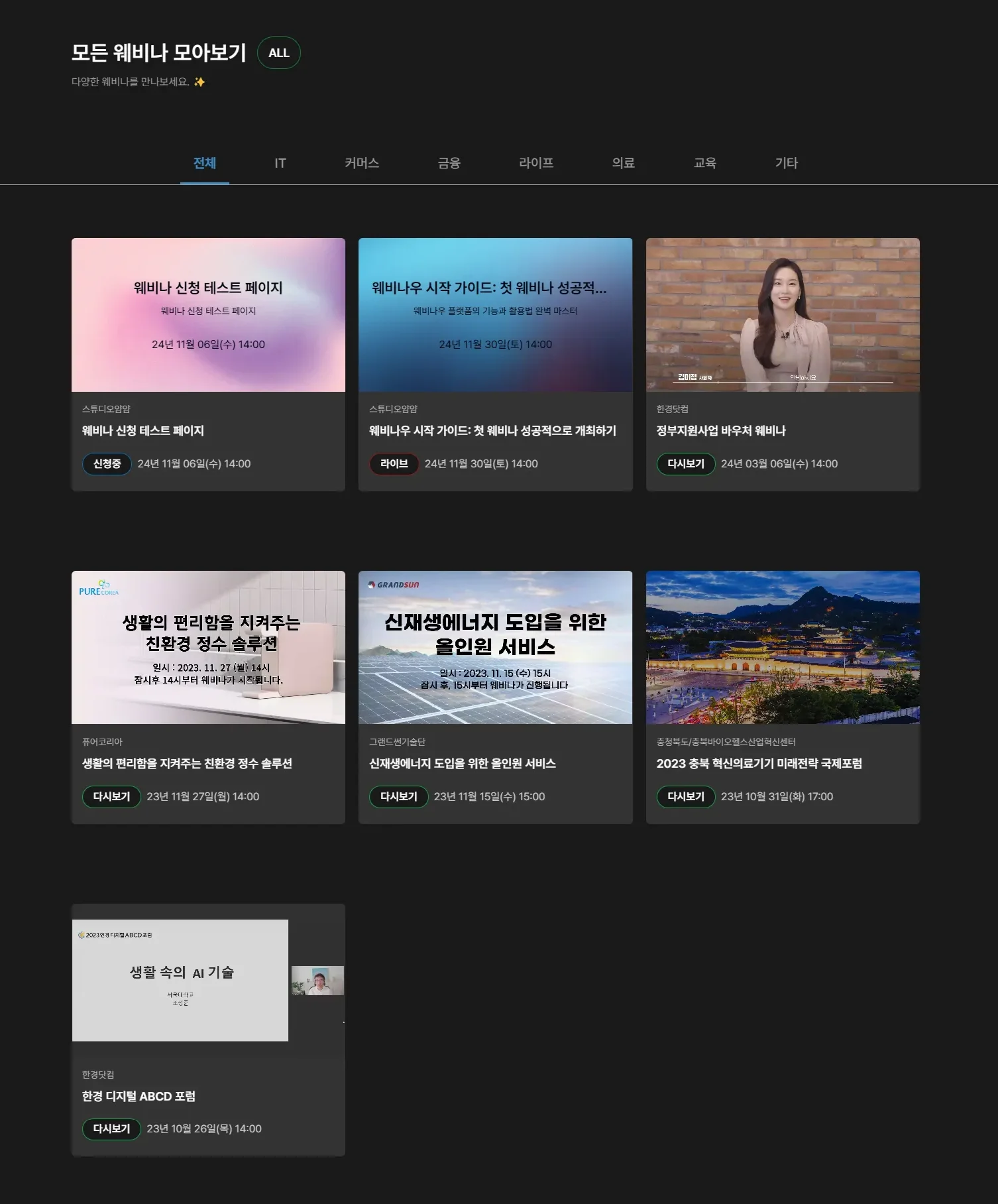 전체 리스트 뿐만 아니라 각 분야에 따라 진행된 웨비나도