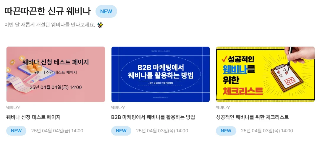 이번달에 새롭게 개설된 웨비나 리스트를 한눈에 볼 수 있습니다.