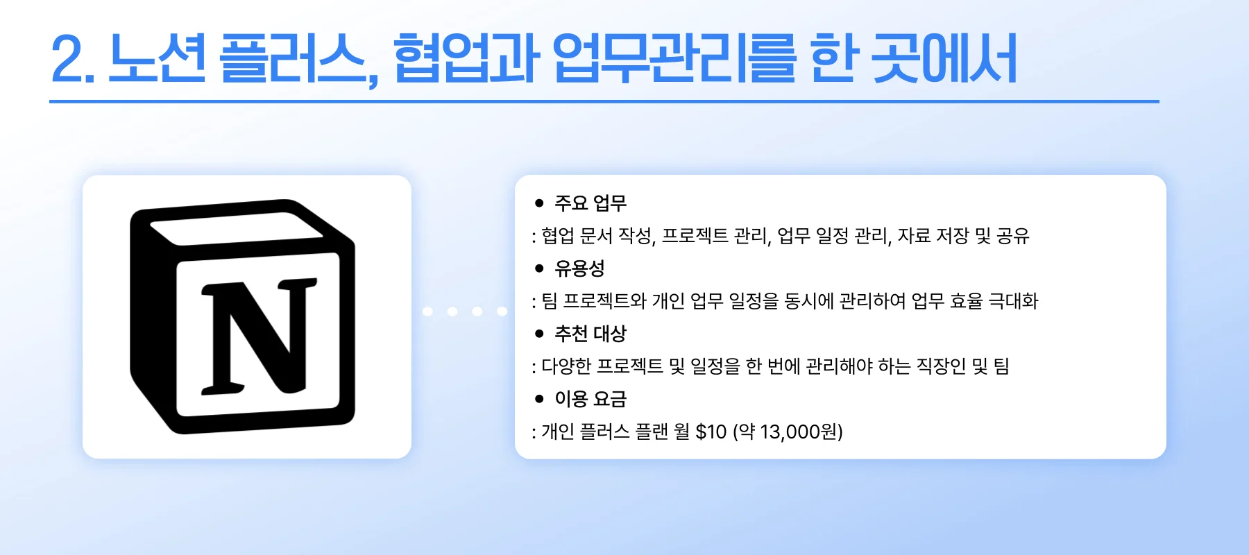 2. 노션 플러스(Notion Plus), 업무 협업과 일정관리를 한 곳에서