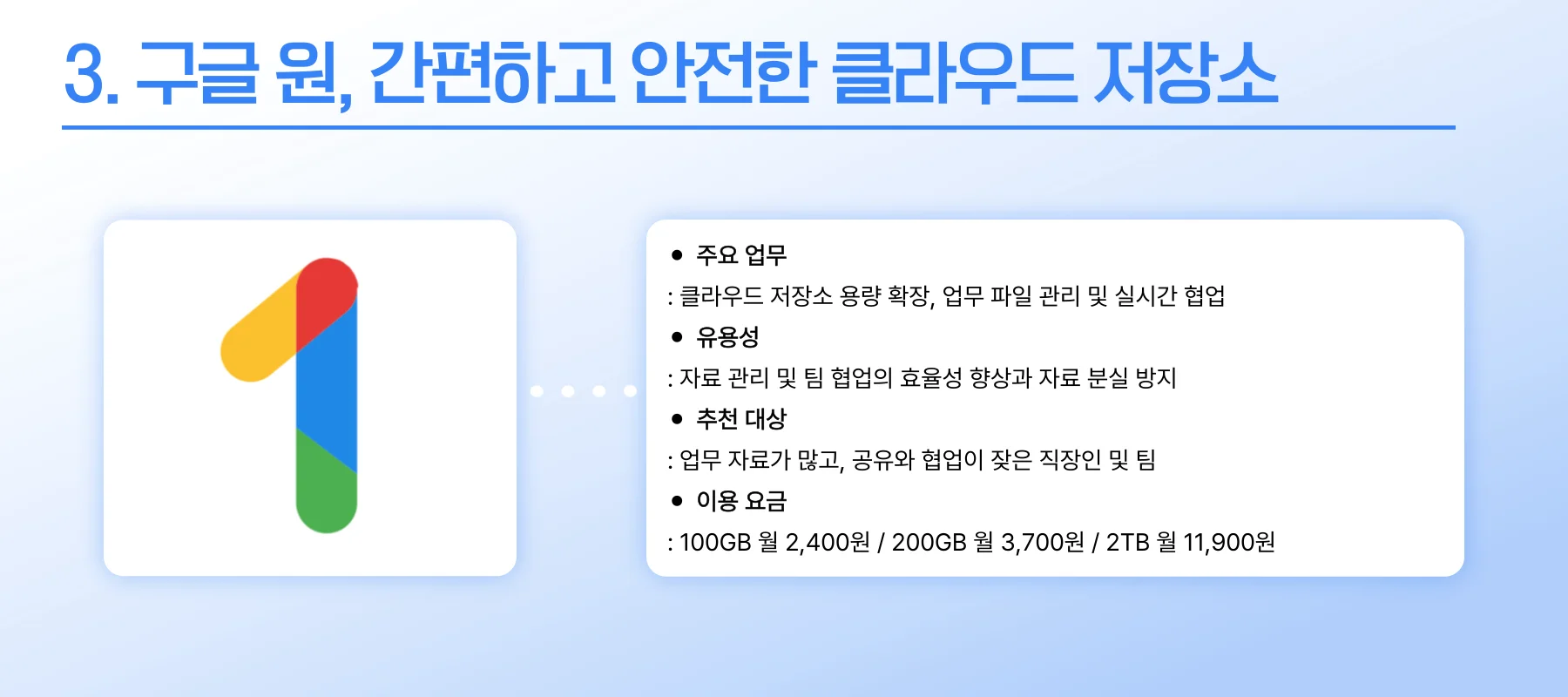 3. 구글 원(Google One), 간편하고 안전한 클라우드 저장소