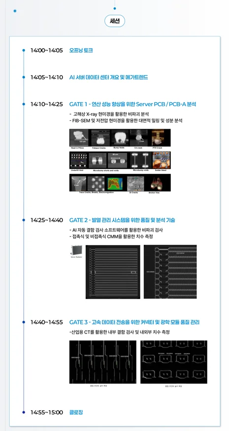 본 세미나에 참석하시어 AI 데이터 센터의 품질을 높이고 검사 효율을 개선할 수 있는 방법을 직접 확인해 주시기 바랍니다.